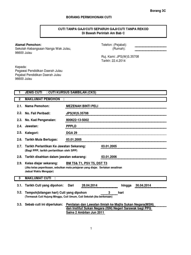 240810 Kemudahan Cuti Kursus Sambilan Di Bawah Peruntukan Surat Pekeliling Perkhidmatan Bilangan 7 Tahun 2009 Dan Cuti Tanpa Rekod Di Bawah Perintah Am Bab C Perkara 44 2
