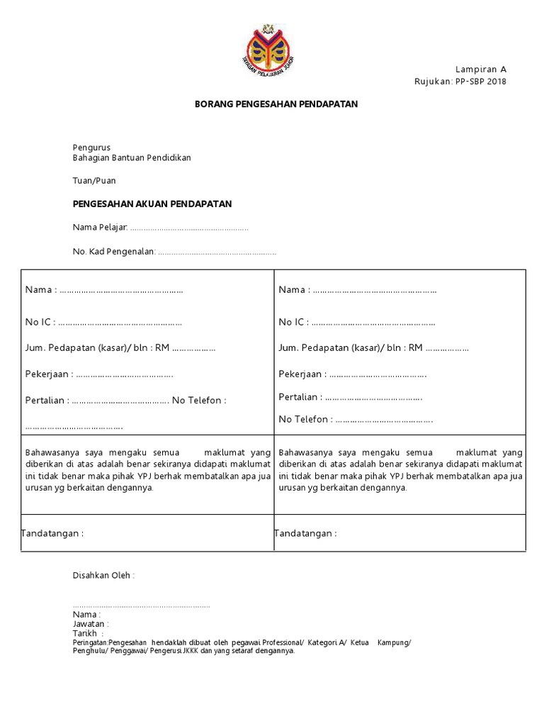 Borang Pengesahan Pendapatan Pdf Document