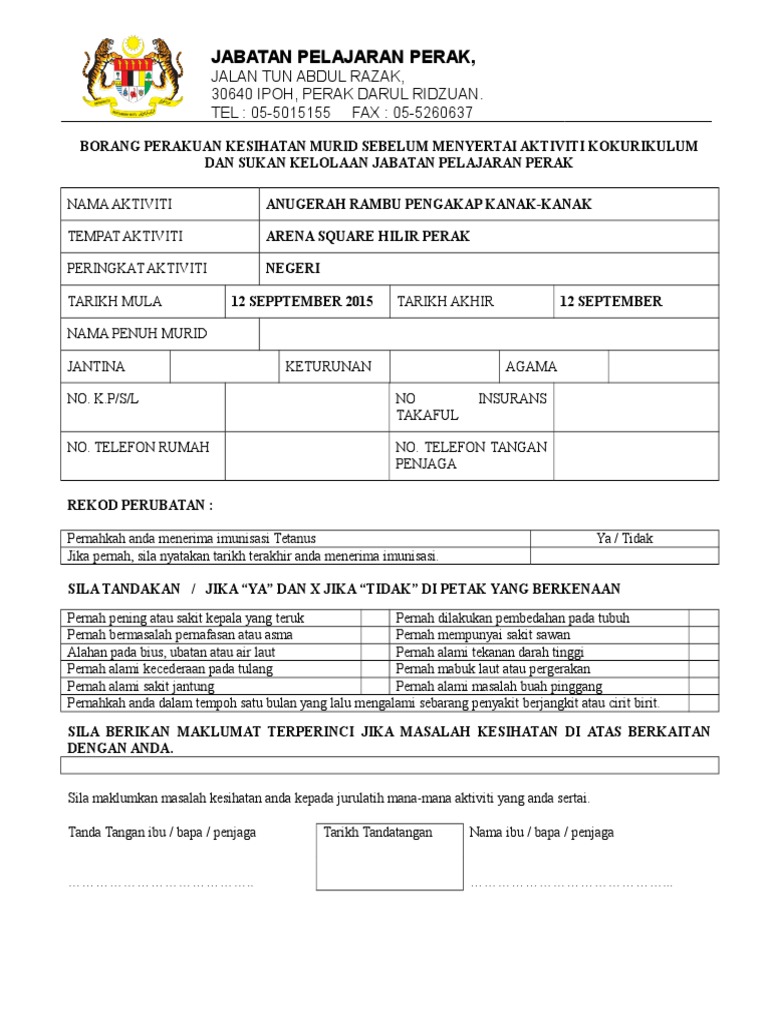 Borang Perakuan Kesihatan Murid Docx Document