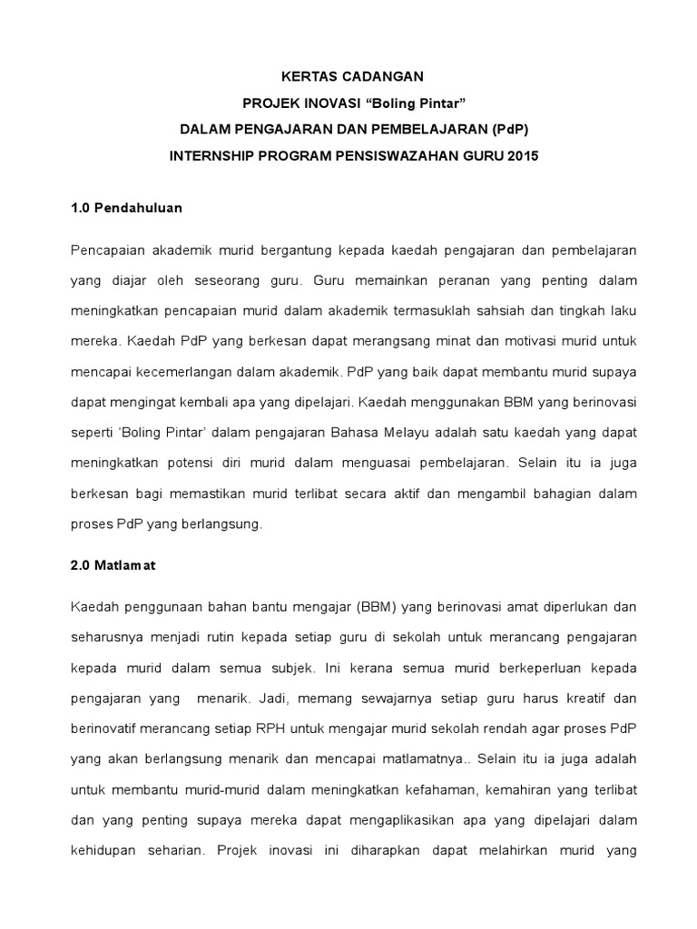Kertas Cadangan Projek Inovasi Dalam Pdp Docx