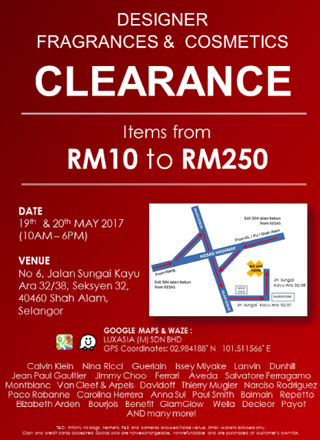 Luxasia Designer Fragrances Cosmetics Clearance Sale From Rm10 Shah Alam 19 20 May 2017
