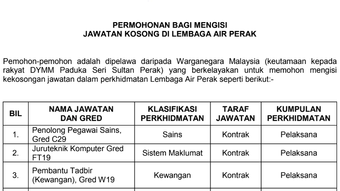 Jawatan Kosong Di Lembaga Air Perak Lap 2020 Jobcari Com Jawatan Kosong Terkini