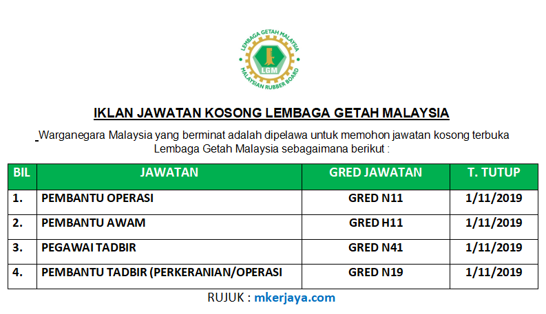 Rasmi Jawatan Kosong Lgm Lembaga Getah Malaysia Terkini 2019 Jawatan Kosong Kerajaan Swasta Terkini 2020