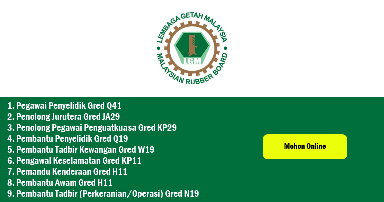 Jawatan Kosong Lembaga Getah Malaysia Lgm Kelayakan Pmr Spm Diploma Ijazah Jawatan Kosong Kerajaan Swasta Terkini Malaysia 2020 2021