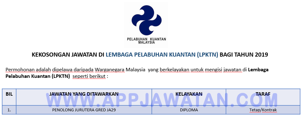 Jawatan Kosong Terkini Di Lembaga Pelabuhan Kuantan Lpktn Appjawatan Malaysia