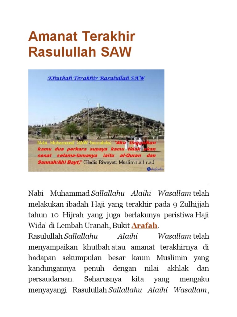 Khutbah Terakhir Yang Disampaikan Nabi Muhammad Di Bukit