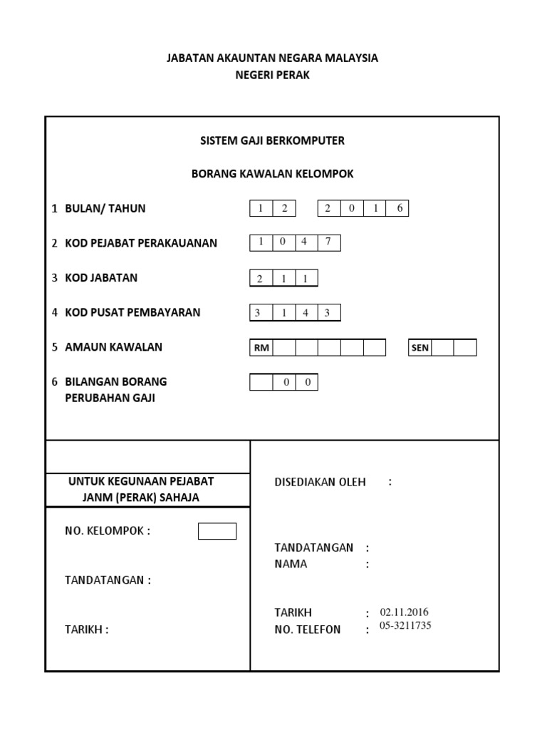 Borang Kawalan Kelompok
