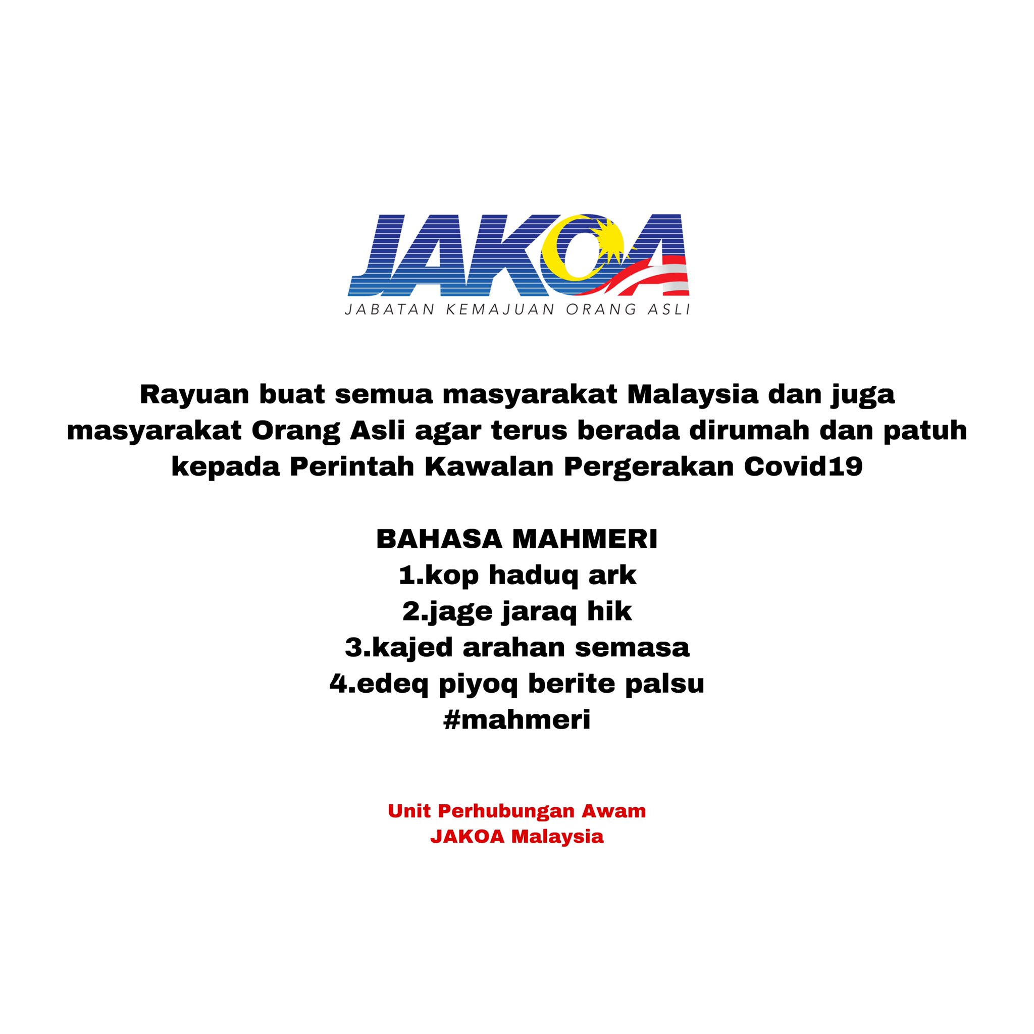 Jab Kem Orang Asli On Twitter Tugasmulia Jakoamalaysia Stayhome Kitajagakita